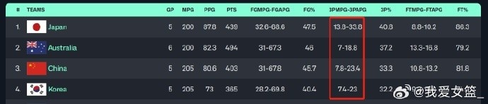 一个不易被察觉但却十分重要的信号是,与上一届亚洲杯相比,韩国队和澳大利亚队的场均三分出手次数分别提高了10.4次和7.7次,场均三分球命中数分别提高了5.8次和3.3次。也就是说,韩国队和澳大利亚队的打法也在转变,也在强调三分球对比赛带来的改变,这其中以韩国队为甚,她们曾在亚洲杯前的比赛中有过单场49中25的三分球表现。