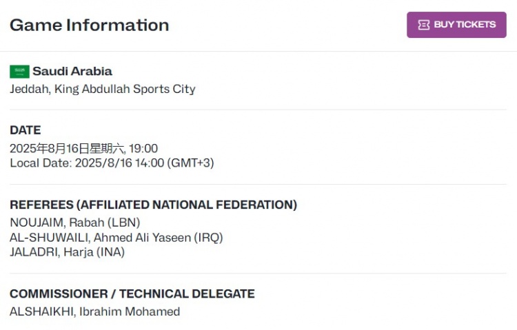 本场比赛的裁判组已经出炉,吹罚过上一场中韩大战的伊拉克裁判Ahmed Ali Al-shuwaili今天继续吹本场比赛,另外两名裁判是来自黎巴嫩的Rabah Noujaim和印尼的Harja Jaladri。