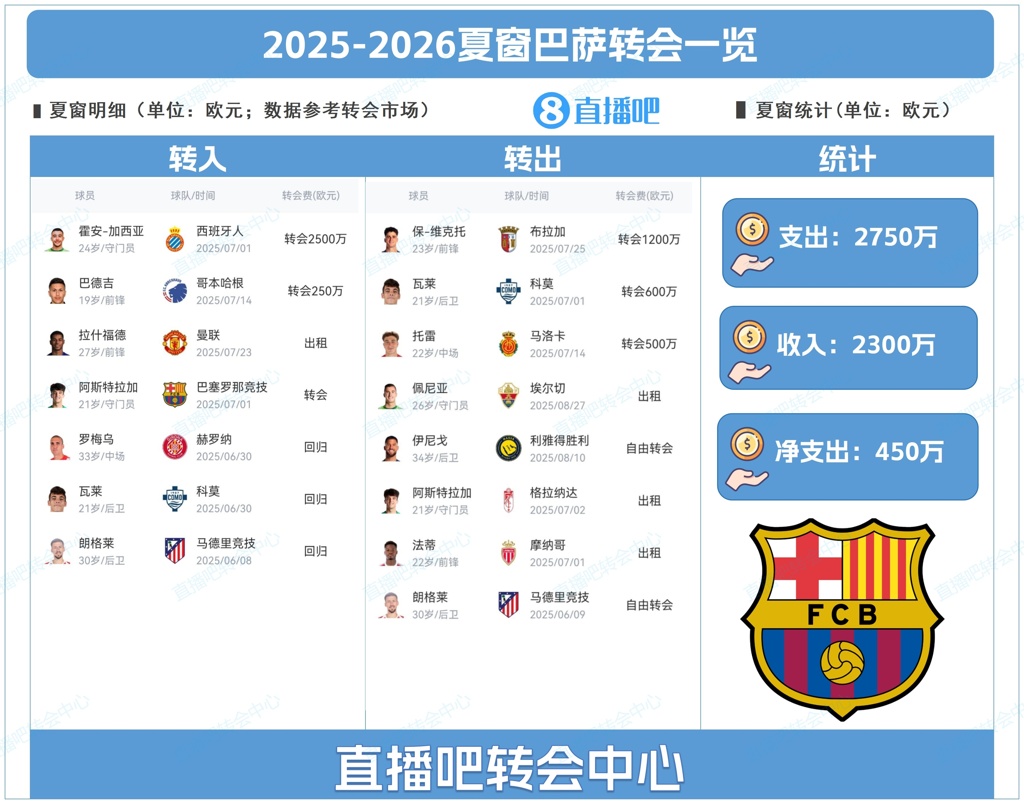 为吧友们总结了巴塞罗那今夏的转会操作,吧友们能打几分?